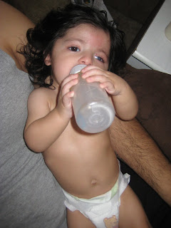 he was able to go from just nibbling his bottle to drinking while holding it when he wanted to drink!